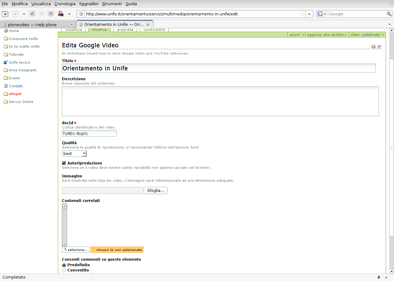 | 17/10/2008 | plone-video inserimento |